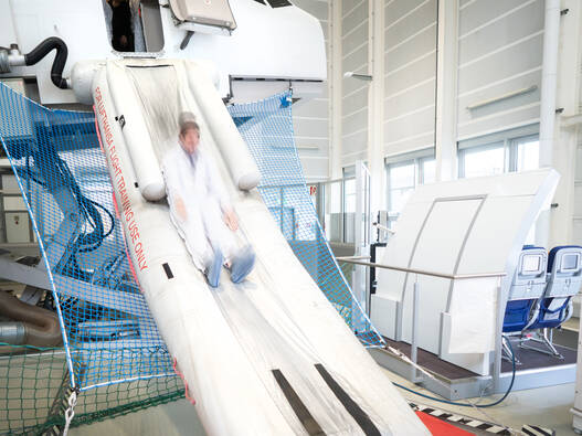 Eines der Highlights auf Ihrem Flug ist – je nach gewähltem Modul – die Evakuierung über die Notrutsche des Flugzeugs. Wir bieten Ihnen drei Module an, die in der Dauer und Intensität variieren: